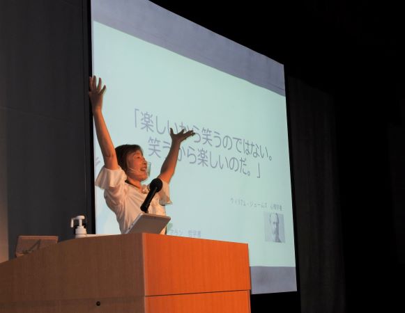 講演のテーマはH先生が考えてくださった『笑いヨガでリフレッシュ!マインドフルネスでなりたい自分にリセット』で行いました。