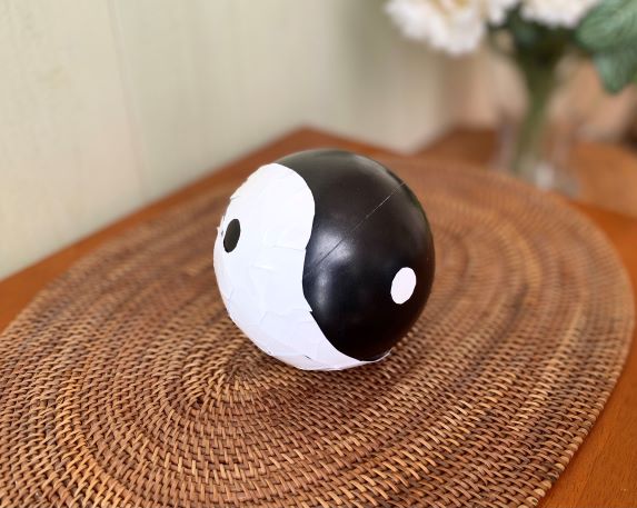 すべてのものごとやできごとには陰と陽の二極性が混じりあっていることを表した勾玉を組み合わせたような陰陽のマークを球体にしたものです。