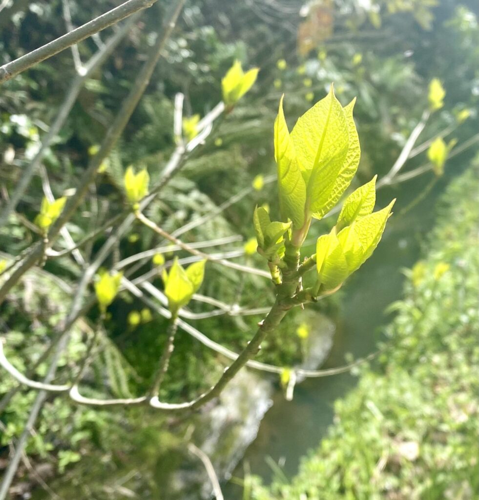 近所の里山を歩いていると、新芽が膨らんで、柔らかくみずみずしい赤ちゃんのような葉っぱが開いて大きくなっていく様子を見ていると、なんともいえない、愛おしい気持ちになります。