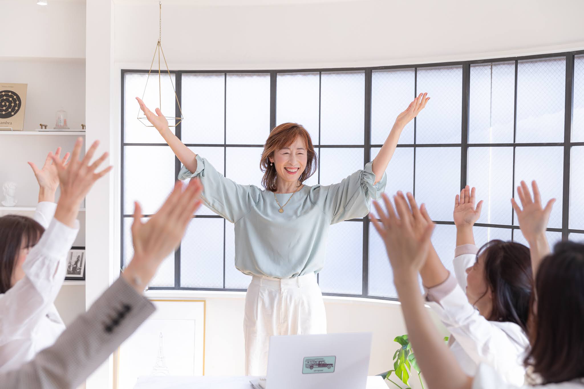 さらに、笑うエクササイズを実践することで、自己肯定感が高まり目標達成する力が生まれたり、折れない心、レジリエンスを育てたり、仕事や家庭、人生によい変化をもたらします。